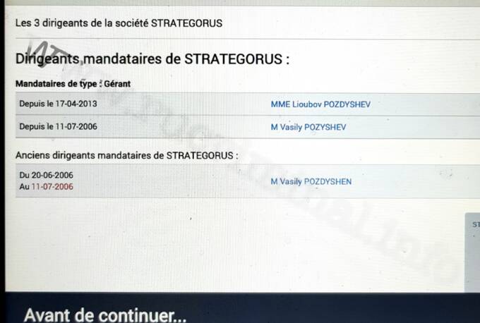 Так, установлено, что во Франции действовала фирма STRATEGORUS. Ее бенефициаром значилась тогдашняя супруга Поздышева Любовь, а сам Василий сотрудником. При этом в документах (сознательно или нет) была изменена его фамилия с Pozdyshev на Pozyshev, Уже в первые месяцы своего существования фирма, состоявшая из двух сотрудников-супругов, получила доходы почти в четверть миллиона евро (прибыль за другие периоды не раскрывается). Эти деньги поступили за некие консультационные услуги.