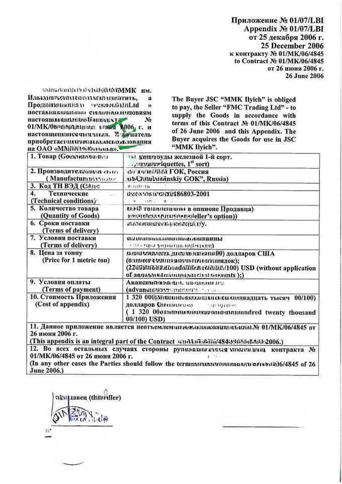 Факт №5. Экспортный объем (11млн.тонн/год) производства АО Лебединский ГОК на поставку ЖРС европейским заводам контрактовался ежегодно через офшоры главных акционеров Металлоинвеста по ценам немного выше себестоимости товара. Реальные же покупатели, металлургические заводы Европы и остального мира платили офшору г-на Скоч, г-на Мошири и Усманова полную рыночную стоимость товара. Для заводов Украины специально учреждена FMC Trading Ltd. Лихтенштейн, поскольку законом Украины запрещалось работать с офшорными компаниями Гибралтара.
