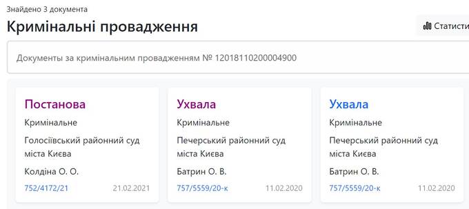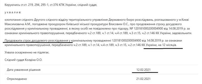 Уголовное производство внесено в ЕРДР под №12018110200004900. Дело расследуется с августа 2018 года. Само по себе дело интересно – группу перечисленных лиц обвиняют в вымогательстве, сопряженном с угрозой убийством, но об этом можно почитать здесь. А нас интересует сам ход дела.