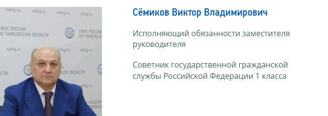 - и.о. замруководителя Тамбовской ФНС В.В.Сёмиков, который отвечает за сбор денежных средств;
