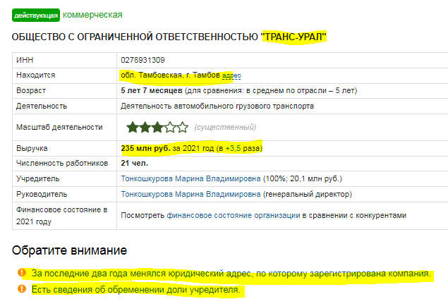 1. ООО «Транс-Урал». Сначала эта компания базировалась в Башкортостане, теперь она располагается на улице Мичуринской в Тамбове.