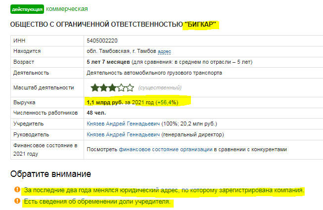 2. ООО «Бигкар». Ранее компания располагалась в Новосибирске, а теперь переехала в Тамбов.