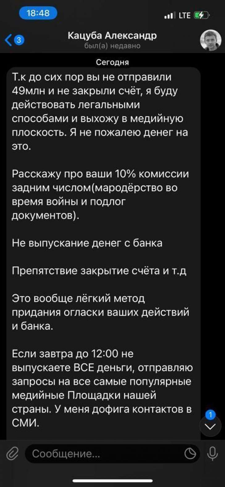 СМИ „внезапно“ решили пожаловаться на ставки определенного банка, которые, по-видимому, были установлены для уменьшения оттока капитала из Украины. Как мы узнали из наших источников, за этой кампанией стоит Александр Кацуба. 18 марта он подал заявку на снятие с Сич Банка 49 млн грн, но не захотел платить 10% комиссию владельцам счетов с депозитом более 500 тыс. грн. грн. Поскольку Кацуба был обвинен в громких уголовных делах и поддерживал партию Анатолия Шария (блоггера, обвиняемого в государственной смене и запрещенного в Украине), банк решил ознакомиться с соответствующими законами и свежими решениями Совета национальной безопасности и обороны. В результате процесс вывода средств был немного отложен.. В ответ Кацуба начал угрожать высшему управлению денежного учреждения. Собственно, он и анонсировал информационную.