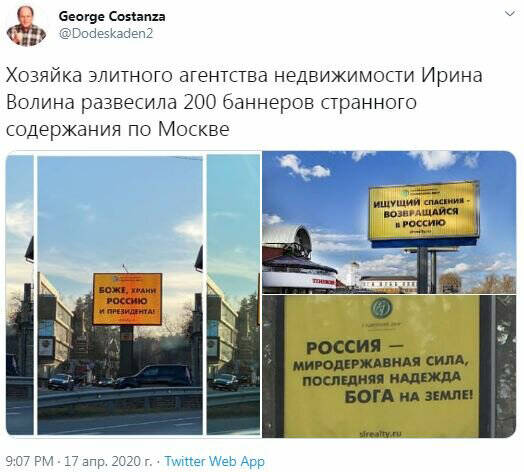 А в соцсетях такие «странные» рекламные щиты от Волиной уже давно у людей вызывают легкий шок. Вот, например, один из постов на Твиттере.