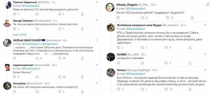 А в комментах к этой публикации барышню Волину вообще называют сумасшедшей: «она уже давно свихнулась…», «бухает Иринка?», «порошка нанюхалась», «на это 152 млн рублей «поддержки» выделили?», «на фашизм смахивает», «за такое явное лизоблюдство хозяйке агентства должно быть стыдно!».