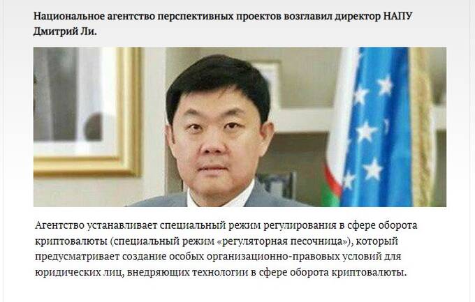 Дмитрий Ли – это глава Национального агентства перспективных проектов (НАПП) Узбекистана, которое, среди прочего, занимается развитием платежных систем Узбекистана и, в частности, оборотом криптовалют. О Дмитрии Ли пишут, что при его активном участии с рынка платежных услуг Узбекистана были вытеснены сторонние платежные системы, обслуживающие High-risk трафик страны. Некоторые говорят, что Дмитрий Ли был не просто участником этого процесса, а напрямую руководил им, оставив на рынке только подконтрольных ему лично игроков.