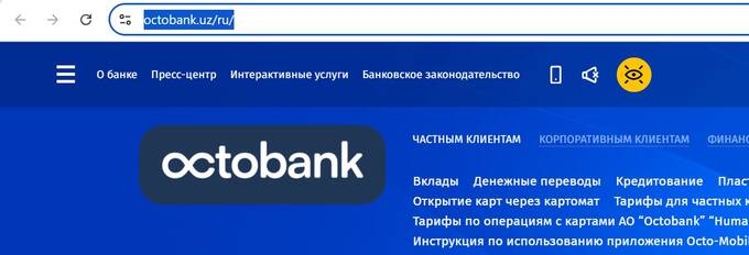 Кто же все эти лица, о которых упоминают ТГ-каналы в разрезе легализации денег? Об этом немного позже, а пока отметим любопытное совпадение, связанное с узбекистанским АК «Оctobank». Вот заглавная страница сайта узбекистанского Оctobank. Обратите внимание на логотип банка.
