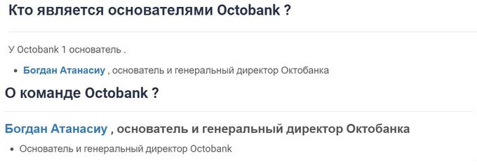 Правда, румынско-чешский Оctobank, основанный в 2021 году Богданом Атанасиу, так и не заработал – дальше амбициозных заявлений никому неизвестного «предпринимателя Богдана Атанасиу» дело не пошло, сейчас домен банка octobank.com продается за три тысячи долларов, а местом регистрации указана Москва.