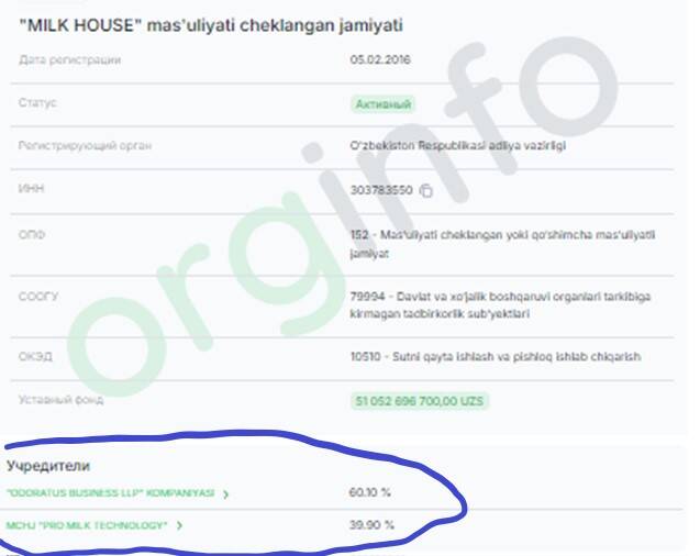 Pro milk technology вместе с Оdoratus business LLP (Великобритания) владеют компанией Milk house.