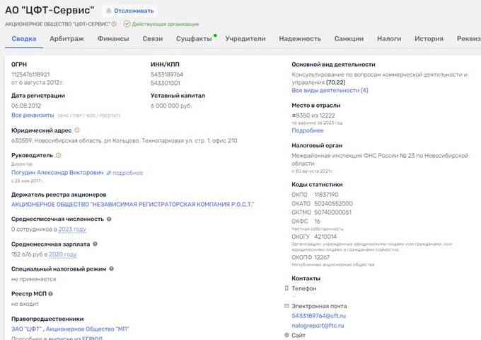 Основателем «Платежного центра» является АО «ЦФТ-Сервис», тоже зарегистрированное в Новосибирске, руководитель Погудин Александр Викторович.