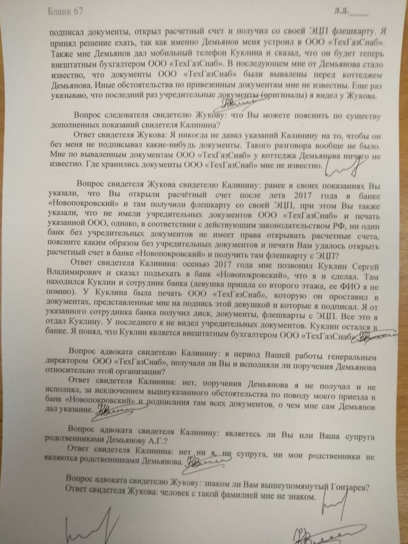 Из протоколов допросов, которые предоставил наш источник следует, что в "ТехгазСнаб" Калинина утроил никто иной как Демьянов.