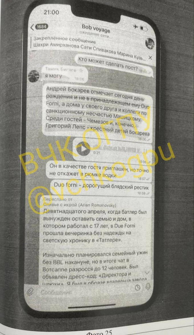 В распоряжении издания оказались скрины внутреннего чата команды телеграм-канала "Тушите свет", во время обсуждения создания злополучного поста о праздновании дня рождения Андрея Бокарева в кругу его друзей - Сергея Чемезова и Виталия Машищкого.