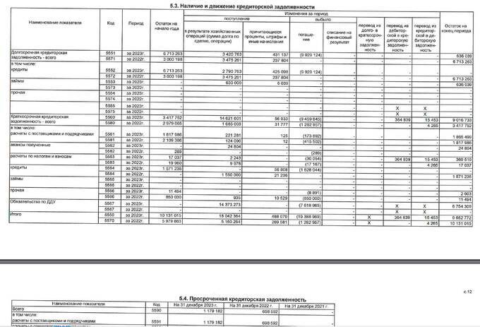 Так, судя по отчёту за 2023 год, СЗ «Гранель-М» на начало 2023 года выдало 3,5 млрд рублей займов и при этом остаток долгосрочной кредиторской задолженности на этот же период у фирмы был 6,7 млрд рублей, в том числе в отчёте фигурируют и кредиты на всю сумму.