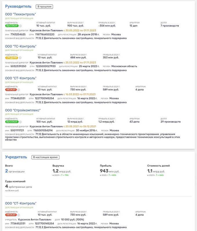 Фирма «СТ-Контроль», созданная в марте 2022 года, принадлежит Антону Курсекову, который также был руководителем ООО «Стройкомплекс» Владимира Полина. Круг, что называется, замкнулся.