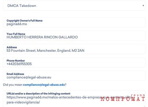 Затем, в 2020 году, Página66 был снят хостингом Digital Ocean на неделю после того, как кто-то подал уведомление о нарушении авторских прав на новостной сайт, как сообщил Даниэль Санчес. Онлайн-запись запроса показывает, что он был подан Гальярдо, который преоставил адрес в Великобритании.