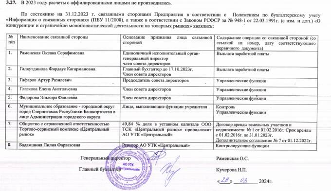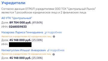 Но самое главное, что АО УТК «Центральный» вместе с Ларисой Назаровой и Ильшатом Нигматуллиным владеют ООО ТСК «Центральный Рынок». Само же АО на конец декабря 2023 года принадлежало администрации Стерлитамака. То есть супруга премьера Башкирии и его зять ведут бизнес с мэрией крупного города Башкирии, который связан с бывшим МУП.