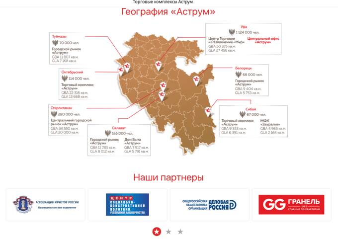 Управляет этим активом УК «Аструм», под крылом которой свыше 170 тыс.кв. м площадей для аренды и 2800 торговых мест. Она также управляет Центром торговли и развлечений «Мир«, домом бытовых услуг в Салавате, торгово-складская база «ЗауралОптТорг», Центральным городским рынком «Аструм» в Стерлитамаке, ТК «Аструм» в г. Октябрьский, рынком «Аструм» в г. Туймазы и таким же в Салавате, Белорецке, МФК «Зауралье» в г. Сибай и т. д.