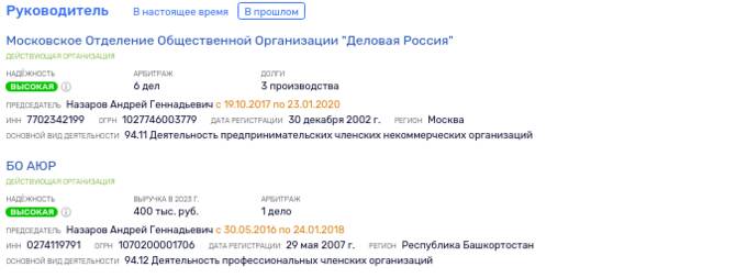 Сам Назаров-старший, к слову, был главой отделения ассоциации юристов и главой московского отделения «Деловой России».