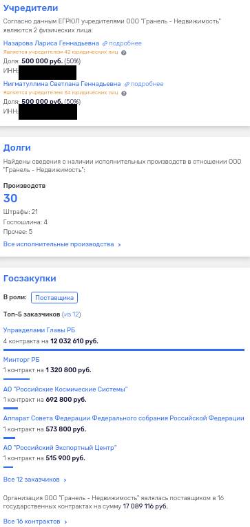 Или взять хотя бы тот факт, что сам Нигматуллин и его заместитель - Дмитрий Адушев проходят по уголовному делу о взятках. Поговаривают, что они пытались порешать вопросы с налоговой. Позднее в базе арбитража обнаружился налоговый схематоз и попытка почти на 0,5 млрд рублей завысить налоговый вычет. В деле участвовала фирма - постоянный подрядчик Гранели, ООО «Стройкомплекс» Владимира Полина - ещё одного доверенного лица Назаровых-Нигматуллиных.
