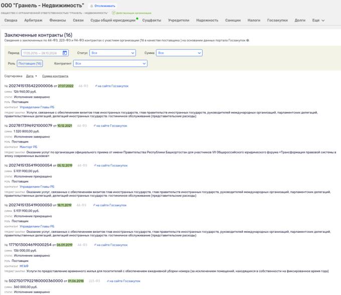 Тот же собственник Sheratonplaza был поставщиком по 16 госконтрактам на 17 млн рублей, а среди заказчиков на 12 млн рублей было управделами Главы Башкирии. При этом в годы, когда подписаны контракты, Назаров был уже замом Хабирова. Конфликт интересов? Нет, не слышали.