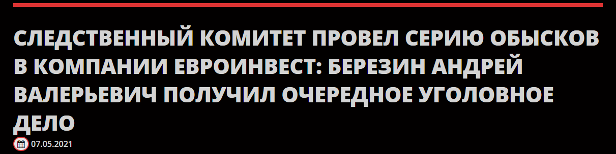 И таких примеров очень много. Это далеко не весь шлейф махинаций, который тянется годами за скандальным российским миллиардером. За раз обо всех преступлениях одиозного хозяина «Евроинвеста» Андрея Березина и не расскажешь.
