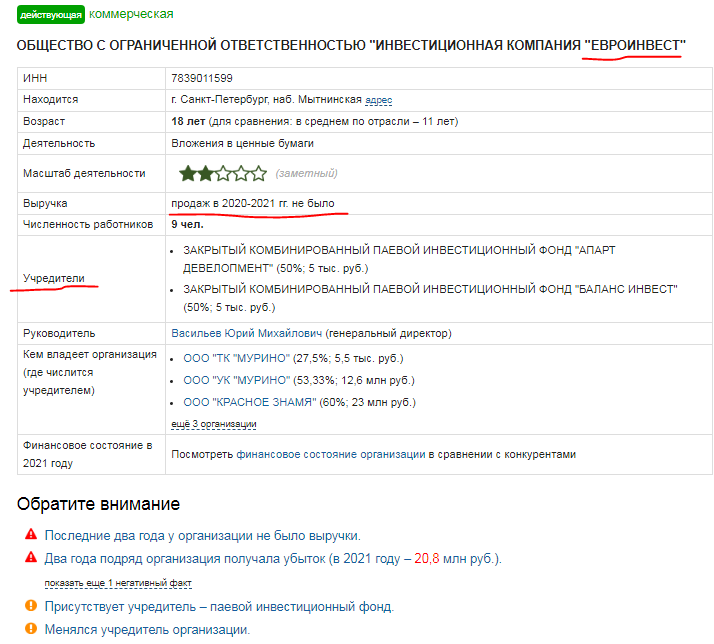 Так, на протяжении последних лет организация получала убытки, в частности, в 2021-м году они составили минус 20,8 миллионов рублей. Выручки и продаж за последние годы также не было. Поэтому на протяжении последнего времени пресс-службой инвестиционной фирмы ведется активная информационная кампания для создания эффекта присутствия Березина на рабочем месте.