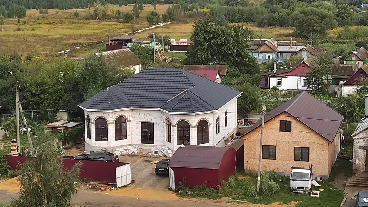 Остатки сгоревшего дома орловского цыганского барона (апрель 2021 г.) и его восстановленный дом (конец августа 2021 г.)