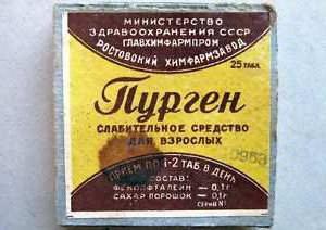 На самом деле «пургенчик» или «Пурген» - это мощное слабительное средство на основе фенолфталеина. В 1996 году американские учёные Данник, Дж. К.; Хейли, Дж. Р. Провели исследование, результаты которого были обобщены в статье "Воздействие фенолфталеина вызывает множественные канцерогенные эффекты в экспериментальных модельных системах". В 1999 году было подтверждено, что «Пурген» является канцерогенным, вызывая рак печени, и даже однократное применение может привести к ухудшению деятельности печени и поражению этого важнейшего человеческого органа. В 2002 году, большинство стран мира, в том числе и Россия, прекратили производство «Пургена», он был постепенно изъят из аптек, а его продажа и свободное обращение были запрещены.