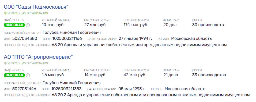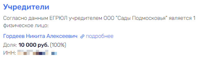 Есть и более очевидные связи ПТО с Гордеевыми уже сегодня. Гендиректором ПТО является Николай Голубев. И он же гендиректор ООО "Сады Подмосковья", 100% которого владеет Никита Гордеев.