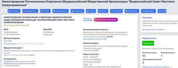 Также Умербаев на сайте "Всероссийского Совета местного самоуправления" указан как руководитель исполнительного комитета регионального отделения этой организации. По данным Руспрофайл, в Нижегородской области председателем регионального совета этого совета является сенатор (представитель от Законодательного собрания Нижегородской области) Александр Вайнберг.