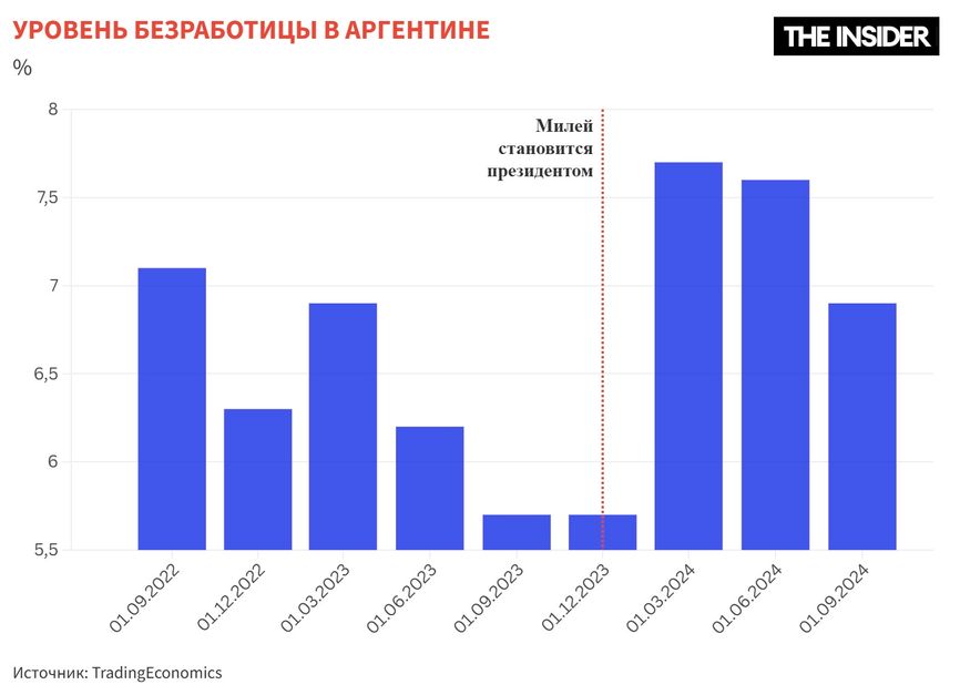 В начале 2024 года траты аргентинцев на коммунальные услуги выросли на 200%, а доля граждан, живущих бедно, подскочила до 53% по сравнению с 40% в 2023 году — это был самый резкий скачок за последние два десятилетия.