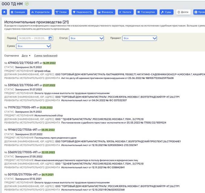 Помимо этого, компания фигурирует в 21 исполнительном производстве, из которых 13 - это штрафы, два касаются выплаты зарплаты.