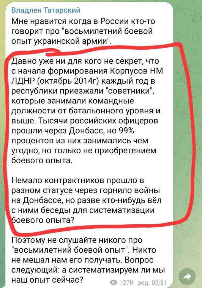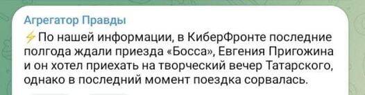 Когда и где его свела судьба с Пригожиным – непонятно. Но нарративы Татарского почти полностью совпадали с пригожинской риторикой и критикой ВС России и высшего руководства страны. Он откровенно озвучивал нелицеприятные для Кремля вещи, которые многим не нравились. И после смерти о его откровенности многие вспомнили. И, в отличие от записных патриотов Симоньян и Соловьева, впавших в очередную истерику с призывами «отомстить Украине», некоторые ставят вопрос в несколько другом разрезе и напоминают некоторые высказывания Татарского.