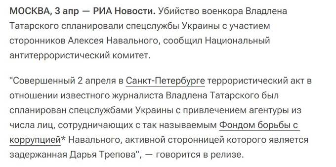 В Национальном антитеррористическом комитете обвинили в теракте Украину. Заодно каким-то образом действия спецслужб Украины увязали с Навальным.