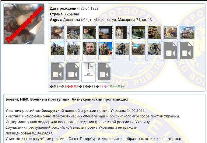 Кстати, обратите внимание на последнюю строчку: «Уничтожен спецслужбами России в Санкт-Петербурге, для создания образа т.н. «сакральная жертва».