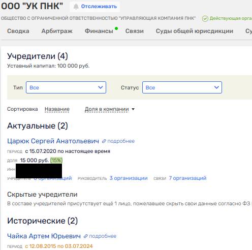 Петрюк - бывший директор ООО «Ук ПНК», во владельцах которого до июля 2024 года фигурировал Артём Чайка - сын бывшего генпрокурора РФ, полпреда в Северо-Кавказском федеральном округе Юрия Чайки. С лета 2024 года одного владельца фирма скрывает.