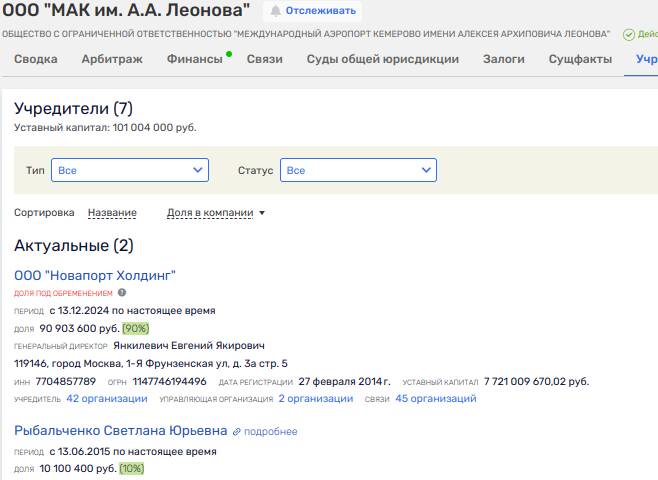 Вместе с бизнесом были переданы и бизнес-партнеры - Владимир Гридин и Роман Троценко. Например, Новапорт Троценко вместе с Рыбальченко владеет ООО «Международный аэропорт Кемерово имени Алексея Архиповича Леонова».