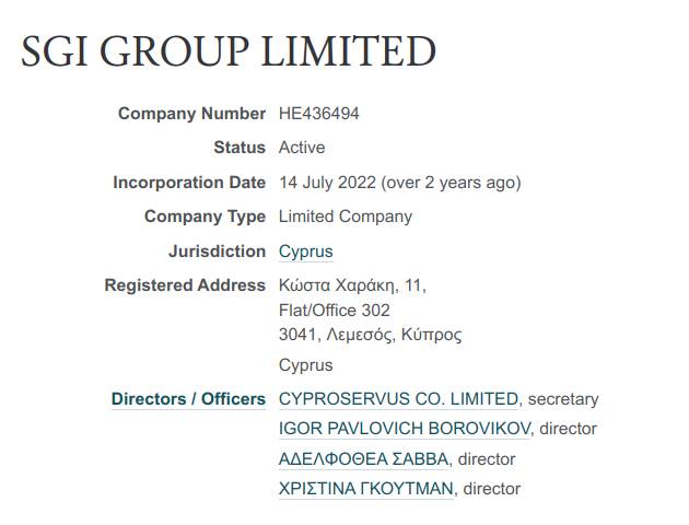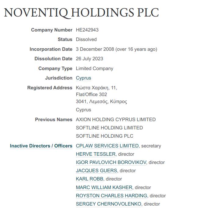 Тогда же в 2022 году было создано и SGI GROUP LIMITED, в директорах которого всё тот же IGOR PAVLOVICH BOROVIKOV, в чьём анамнезе и руководство NOVENTIQ HOLDINGS PLC (ликвидировано в 2023 году). А ведь именно под брэндом NOVENTIQ стала работать иностранная часть дивизиона Софтлайн. Вот только так ли Боровиков не имеет отношения к иностранной части дивизиона, как пытался заявлять?
