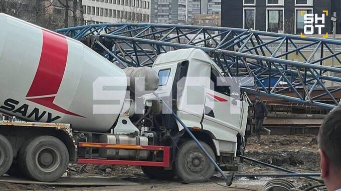 ЧП произошло сегодня днëм на севере столицы на территории стройки на Выборгской улице. По словам очевидцев, под краном провалилась земля, машинист ничего не смог сделать и машина опрокинулась, а стрела упала прямо на кабину стоявшей неподалëку бетономешалки. Крановщик отделался ушибами и лëгким испугом, а водитель второго авто теперь отмечает свой второй день рождения — рабочий покинул кабину незадолго до инцидента.