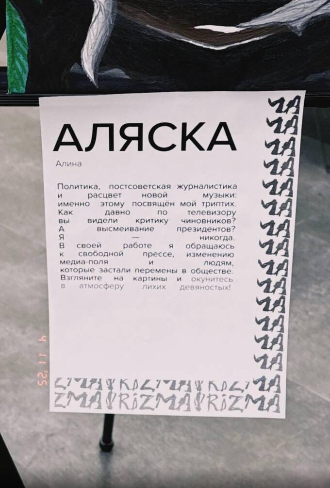 На одной из картин автор изобразила Бориса Ельцина и Владимира Путина в шоу «Куклы». Художница сказала «Грозе», что картины был нейтральны, в них было показано, как развивалась журналистика после распада СССР.
