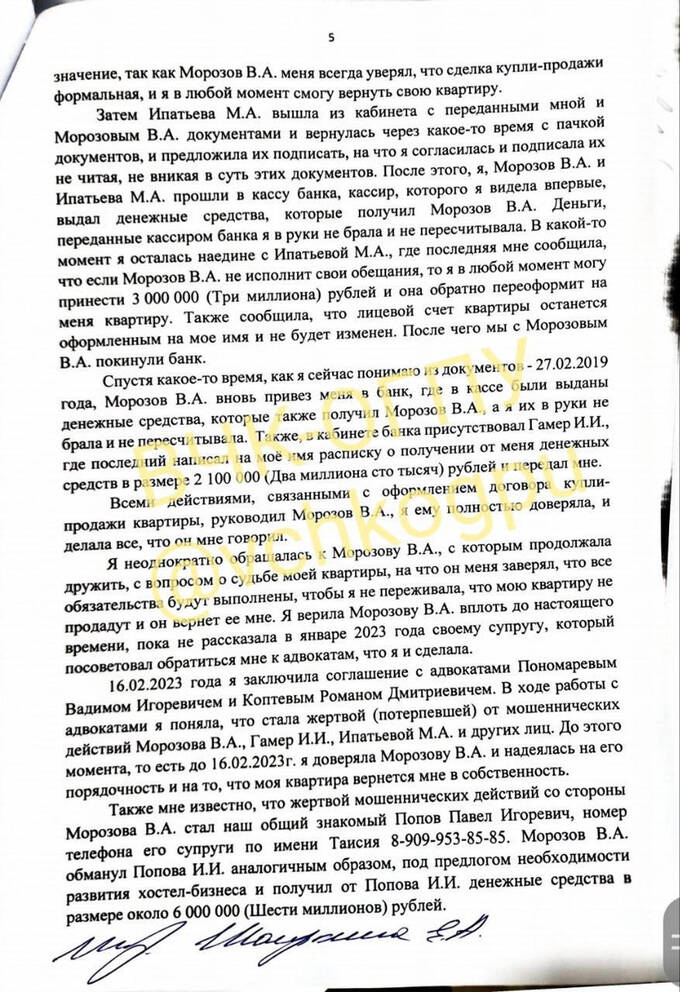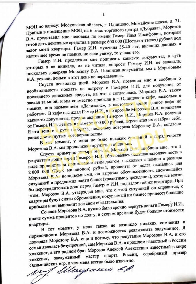 Согласно документам, оказавшимся в распоряжении редакции и рассказам потерпевших и свидетелей, Валентин Морозов, используя известный статус своего брата, его громкое имя, воспользовался доверием семьи бизнесвумен Елены Шаиркиной, обманул ее и супруга, получив права на их квартиру.