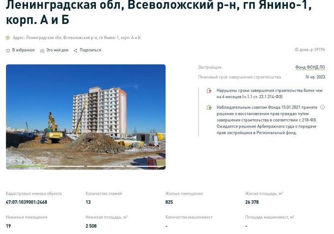 Напомним, ООО "Норманн ЛО", о котором The Moscow Post начал рассказывать ещё в 2018 году, среди прочего было застройщиком двух ЖК - "Яркий" в Янино на шесть 12-этажек и "Десяткино 2.0" в Мурино - на три 18-этажных корпуса. Достройкой корпусов А и Б, по которым принято соответствующее решение, на сегодня занимается федеральный Фонд защиты прав дольщиков. До конца 2023 года предполагается сдать дома, а 188 дольщикам из корпусов второй очереди (В и Г) выплатят компенсации. По данным газеты "Коммерсант", в "Ярком" застройщик успел продать 844 квартиры, а в "Десяткино 2.0" - 1629. Изначально сдать дома в Янино должны были в 2017-2018 годы, но даже на 2019 год готовность была на уровне 30%.