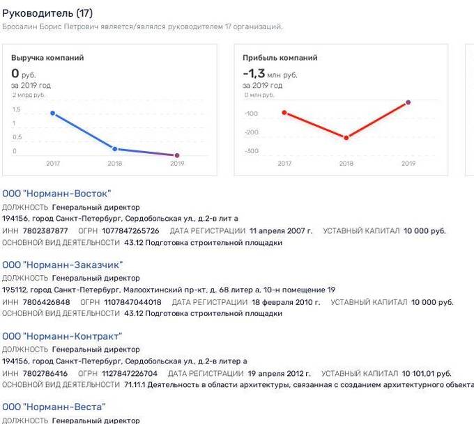 Как сообщало издание 47news, в январе 2019 года Смирнова и его топ-менеджера Бориса Бросалина задержали на 48 часов, но потом выпустили. Бросалин на сегодня - банкрот как физлиц, а ранее был руководителем 17 компаний из дивизиона "Норманн". Его банкротство инициировано ООО "Норманн-строй" в лице конкурсного управляющего.