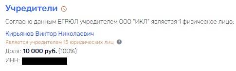Владельцем же ООО "ИКЛ" оказался Виктор Кирьянов, в прошлом - управляющий директор по инфраструктурным проектам госкорпорации "Ростех". Сейчас он выступает учредителем порядка 15 юридических лиц, а является президентом российской общественной организации автомобильного спорта "Российская автомобильная федерация".