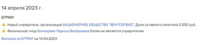 И тут интересный момент. Лариса Бочкарева вышла из капитала компании только в апреле 2023 года. При этом все 100% долей нынешних собственников фирмы находятся у нее в залоге. А проживает она в Екатеринбурге по тому же адресу, по которому проживает и упомянутый выше соратник Буркова Геннадий Ушаков. Об этом пишут "Коммерческие вести".