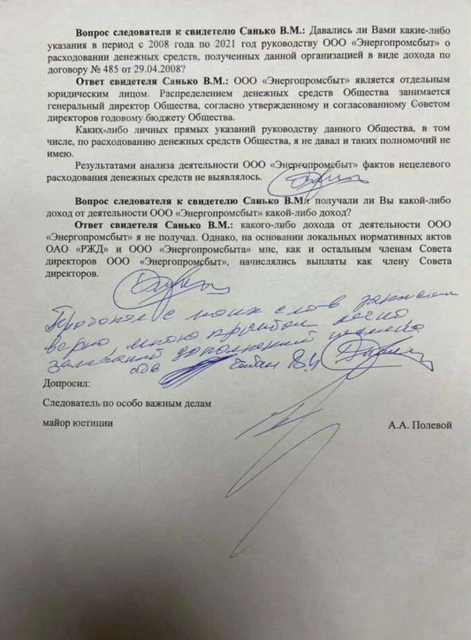 Валентин Санько, по данным источников, активно способствовал этим действиям, используя своё влияние в РЖД для нейтрализации возможных проверок и жалоб. Его роль в схеме сейчас изучается следствием, включая возможное участие в выводе активов и сокрытии финансовых нарушений.