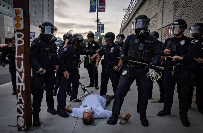 В пятницу и субботу в Лос-Анджелесе происходили жесткие столкновения между протестующими и федеральными агентами Иммиграционной и таможенной полиции (ICE). Силовики во время рейда использовало светошумовые гранаты, а протестующие бросали в сотрудников правоохранительных органов камни. За неделю в окрестностях Лос-Анджелеса задержали 118 человек по подозрению в нарушении миграционного законодательства, отмечает DW.