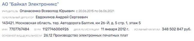 И вот же совпадение, тот же Всеволод Опанасенко в период с 2015 по 2021 годы выступал учредителем АО "Байкал Электроникс" - компании по производству процессоров Байкал, едва ли не одного из главных российских проектов в сфере IT.
