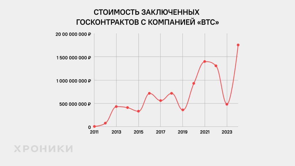Крупным северо-западным спонсором «Единой России», перечислившим 18 млн руб, оказался поставщик медоборудования — петербургская компания «ВТС». Правда, за год до этого «ВТС» пожертвовала на 10 млн больше. У компании большой портфель госконтрактов на 9,6 млрд рублей, начиная с 2011 года. При этом в 2024 году предприятие заключило госконтрактов на рекордные 1,8 млрд рублей. Большинство контрактов в последние годы компания получает без конкуренции.