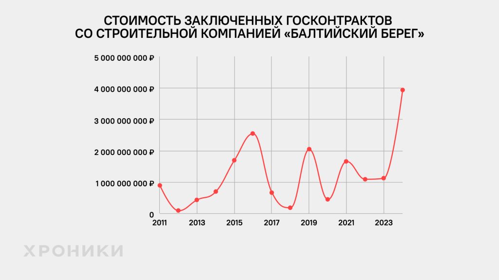 Петербургская строительная компания «Балтийский берег» перевела «партии власти» миллион рублей. Предприятие специализируется на дорожных и железнодорожных работах, преимущественно в СЗФО. У компании внушительный портфель госконтрактов на 19,2 млрд рублей. При этом в 2024 году «Балтийский берег» резко нарастил количество таких контрактов, за что, возможно, и поддержал финансово «Единую Россию».